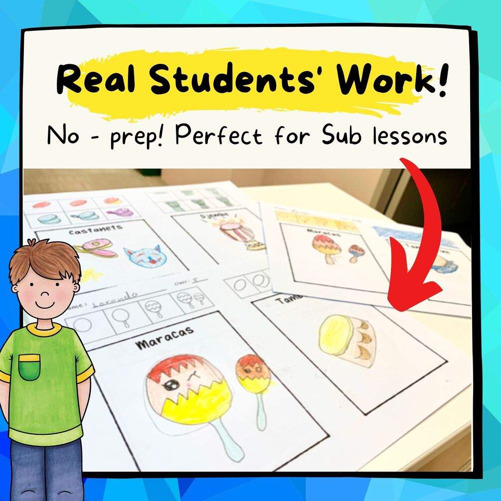 By drawing the instruments themselves, kids will familiarize themselves with the different names of the instruments and how they look.