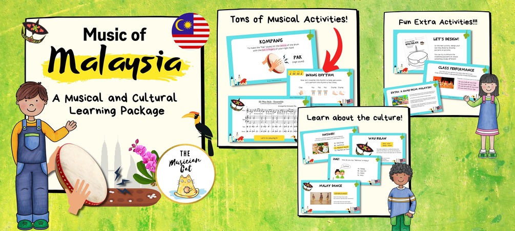 In this fun lesson package, students will learn about Malay music and culture through the traditional folk songs, musical games, ensemble activities and more!