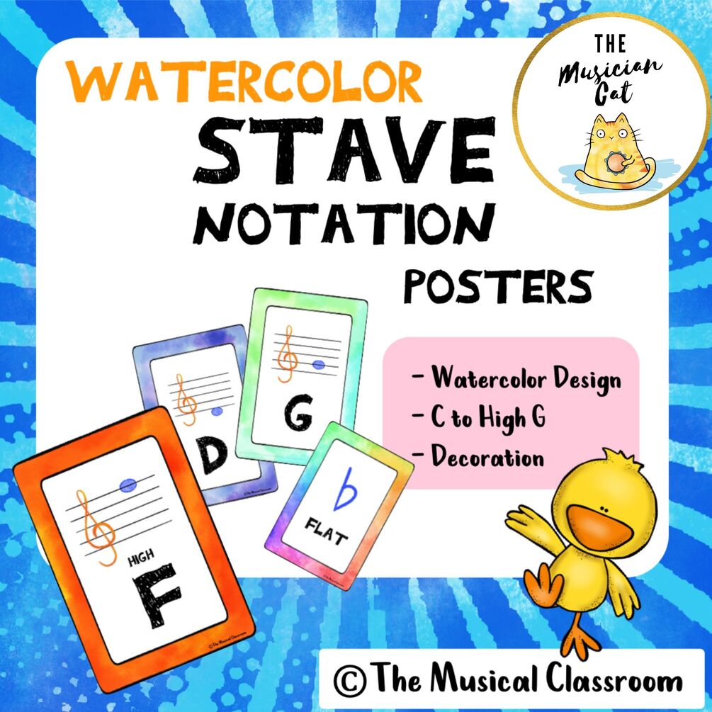 Decorate your classrooms with these beautiful notation posters in WATERCOLOR DESIGN and help your kids remember the notes on the stave.